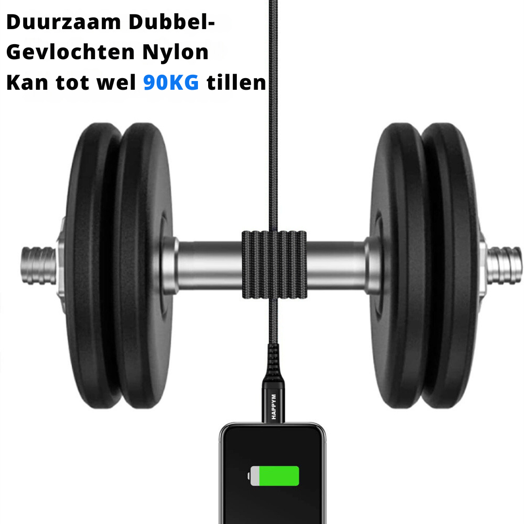 Gemaakt van hoogwaardig gevlochten nylon dat extra bescherming biedt tegen slijtage, knikken en breuken. -